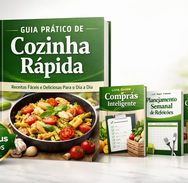 Foi pensando nisso que criei o Guia Prático de Cozinha Rápida, para mostrar como transformar ingredientes simples em pratos que cabem no seu tempo e no seu bolso.